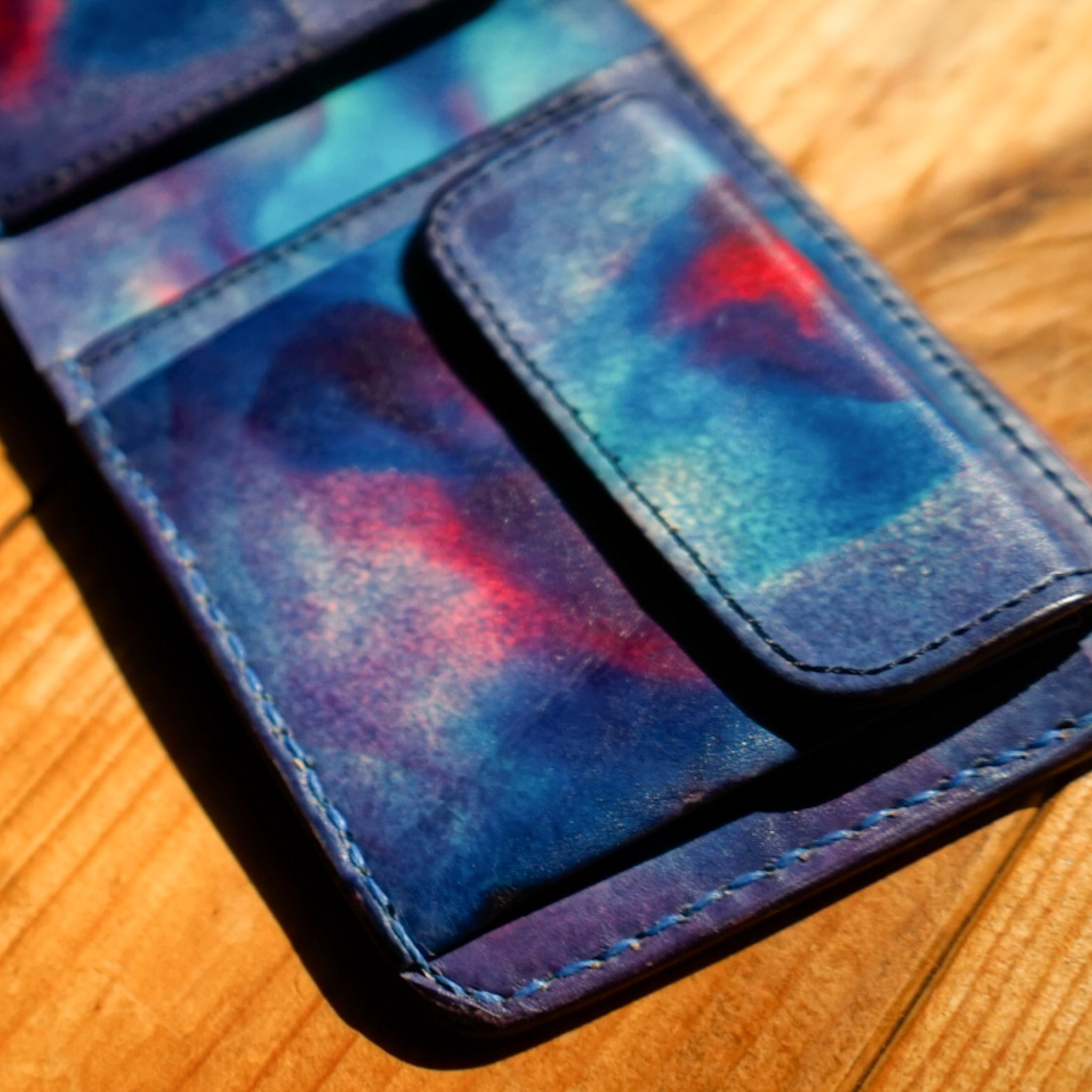 ◯あなたのイメージに合わせて真っ白な革にオリジナル染色を施す世界に一つだけのお財布です。